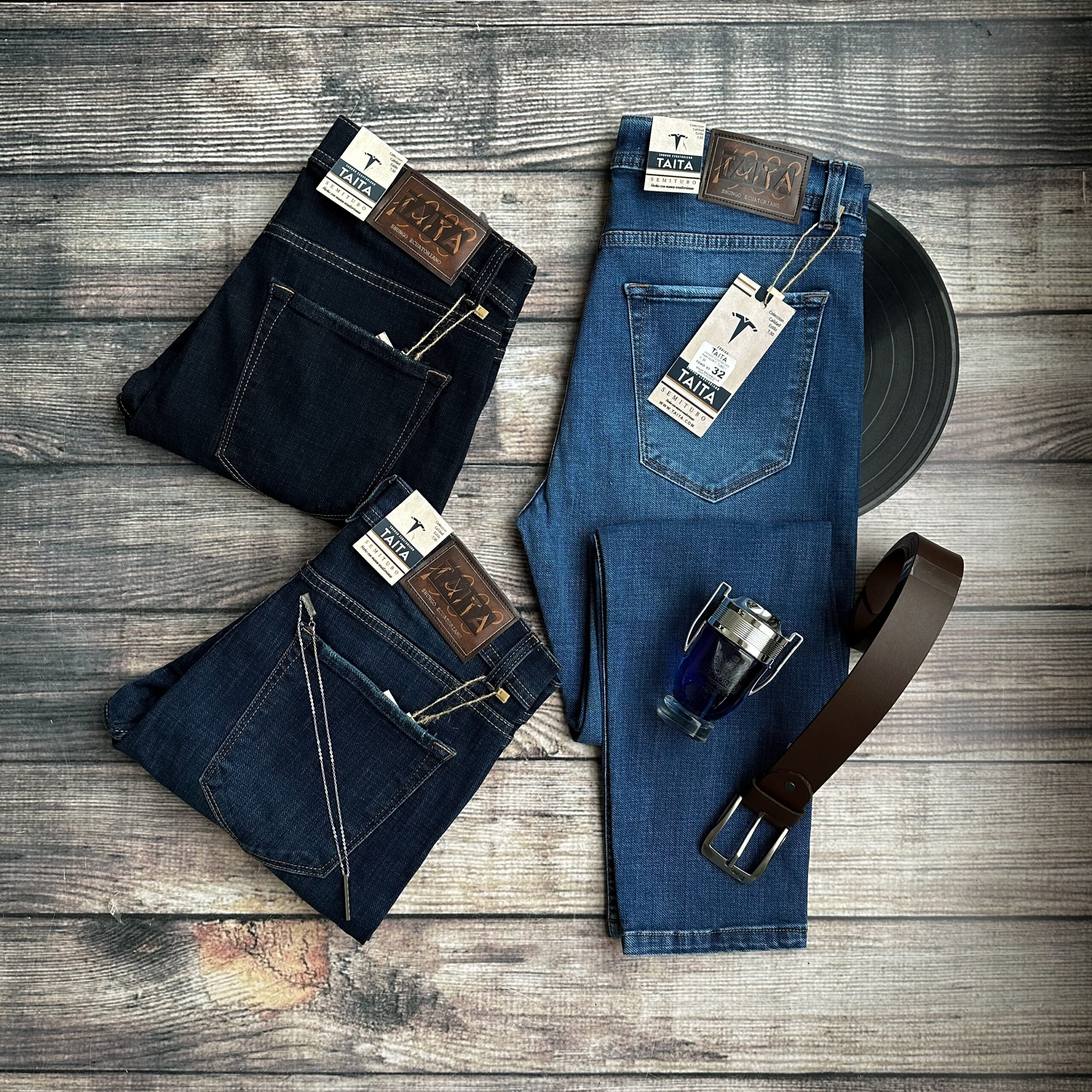 Disponible en tres tonos de jean y en tallas 32, 34 y 36, ofreciendo opciones versátiles para diferentes estilos.